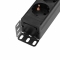 De 8 Schuko-stopcontacten zijn 45° gedraaid en de verzonken, verlichte schakelaar voorkomt per ongeluk aan/uit schakelen.