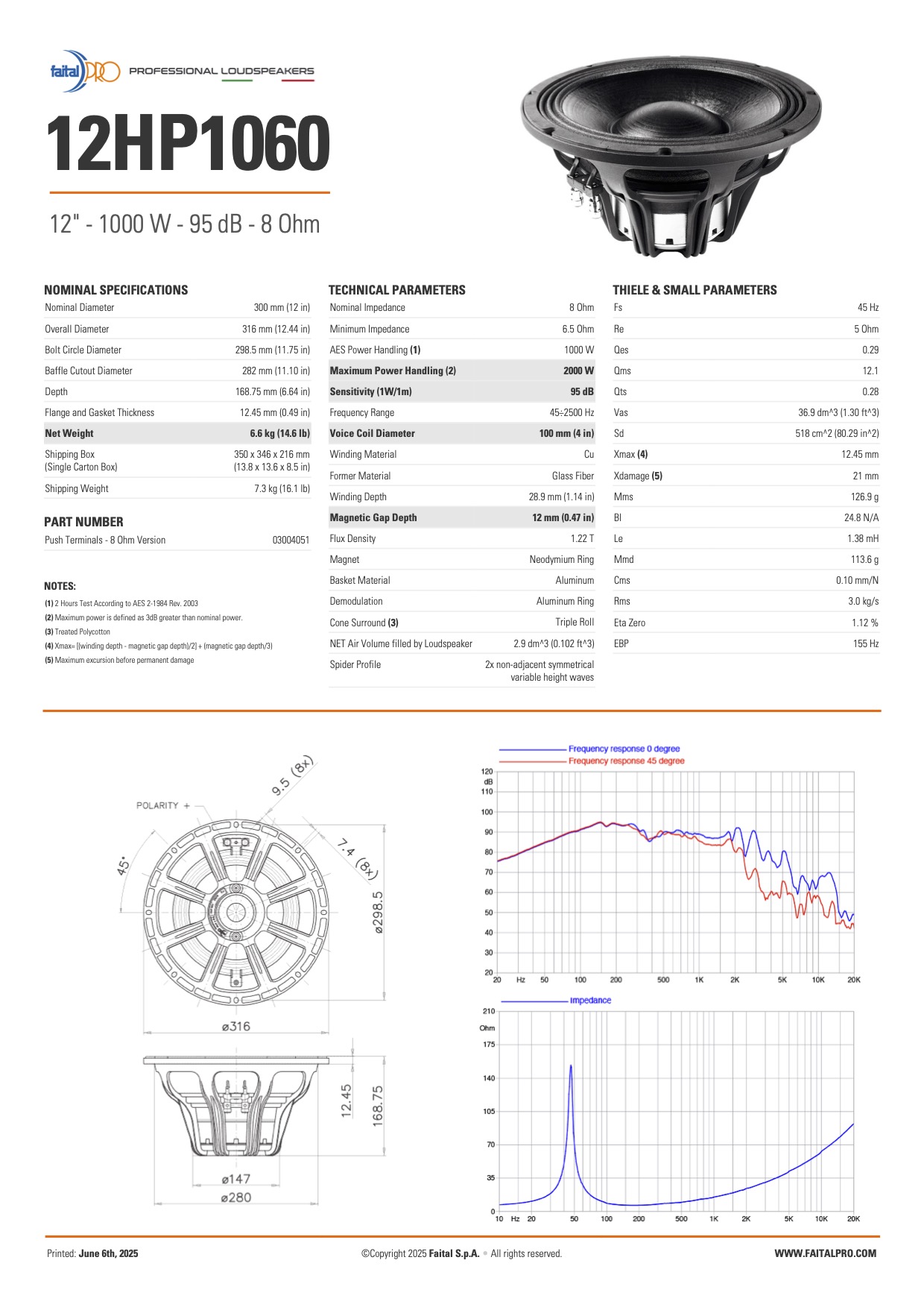 12 inch - 1000 W - 95 dB - 4 Ohm / 8 Ohm LF Driver