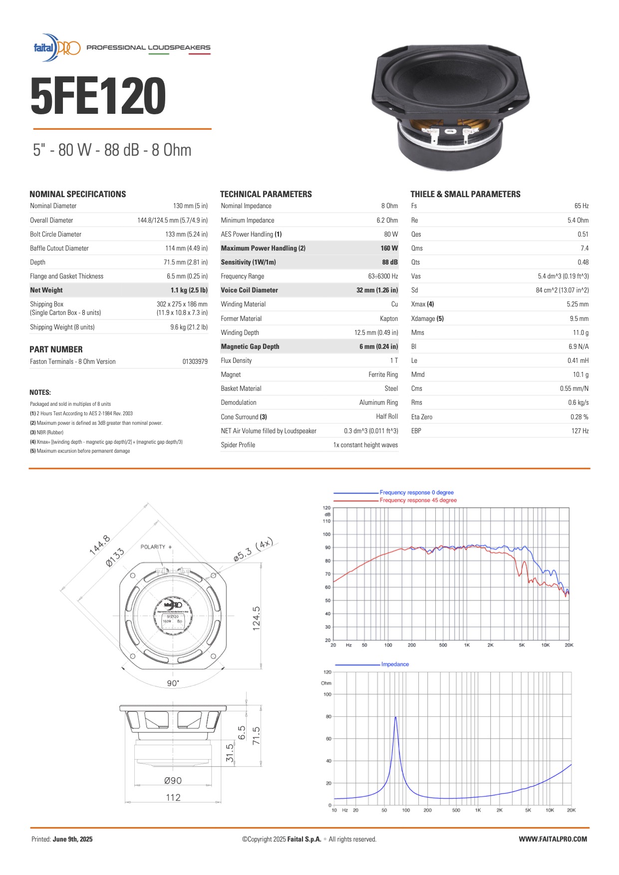 5 inch - 80 W - 88 dB - 4 Ohm / 8 Ohm / 16 Ohm LF Driver