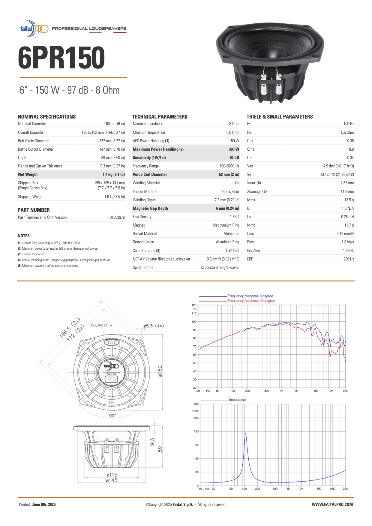 6 inch - 150 W - 97 dB - 8 Ohm LF Driver