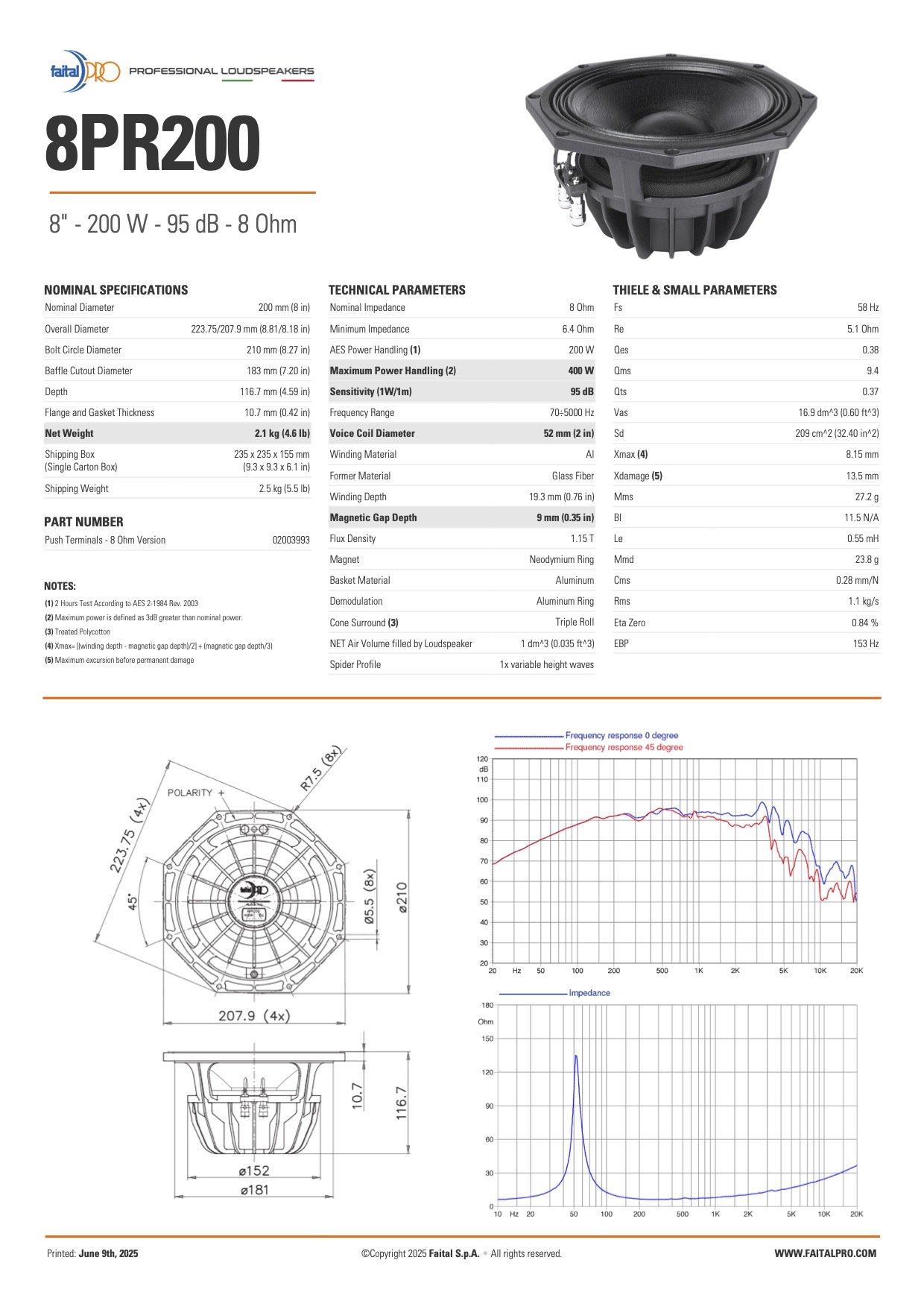 8 inch - 200 W - 95 dB - 8 Ohm / 16 Ohm LF Driver