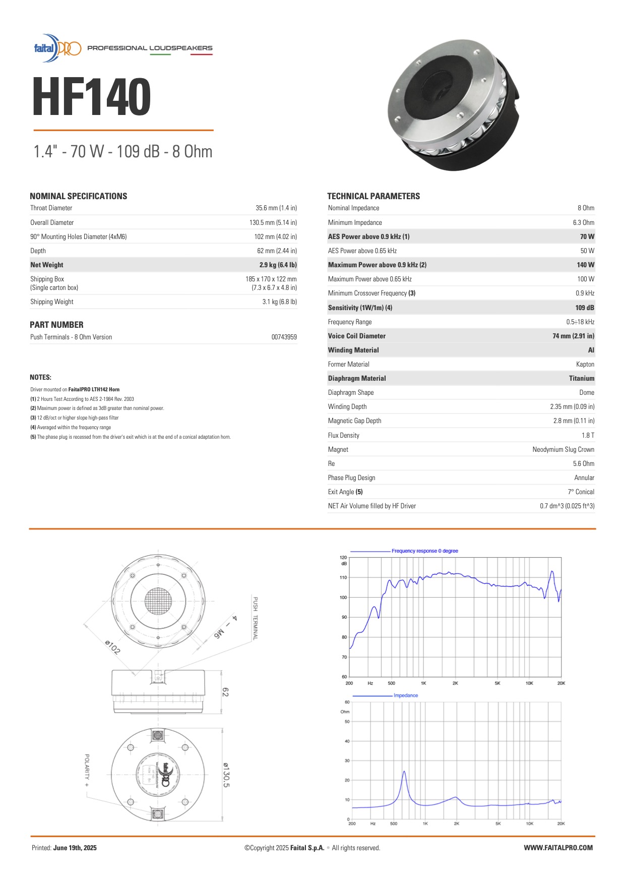 1.4 inch - 70 W - 109 dB - 8 Ohm / 16 Ohm HF Driver