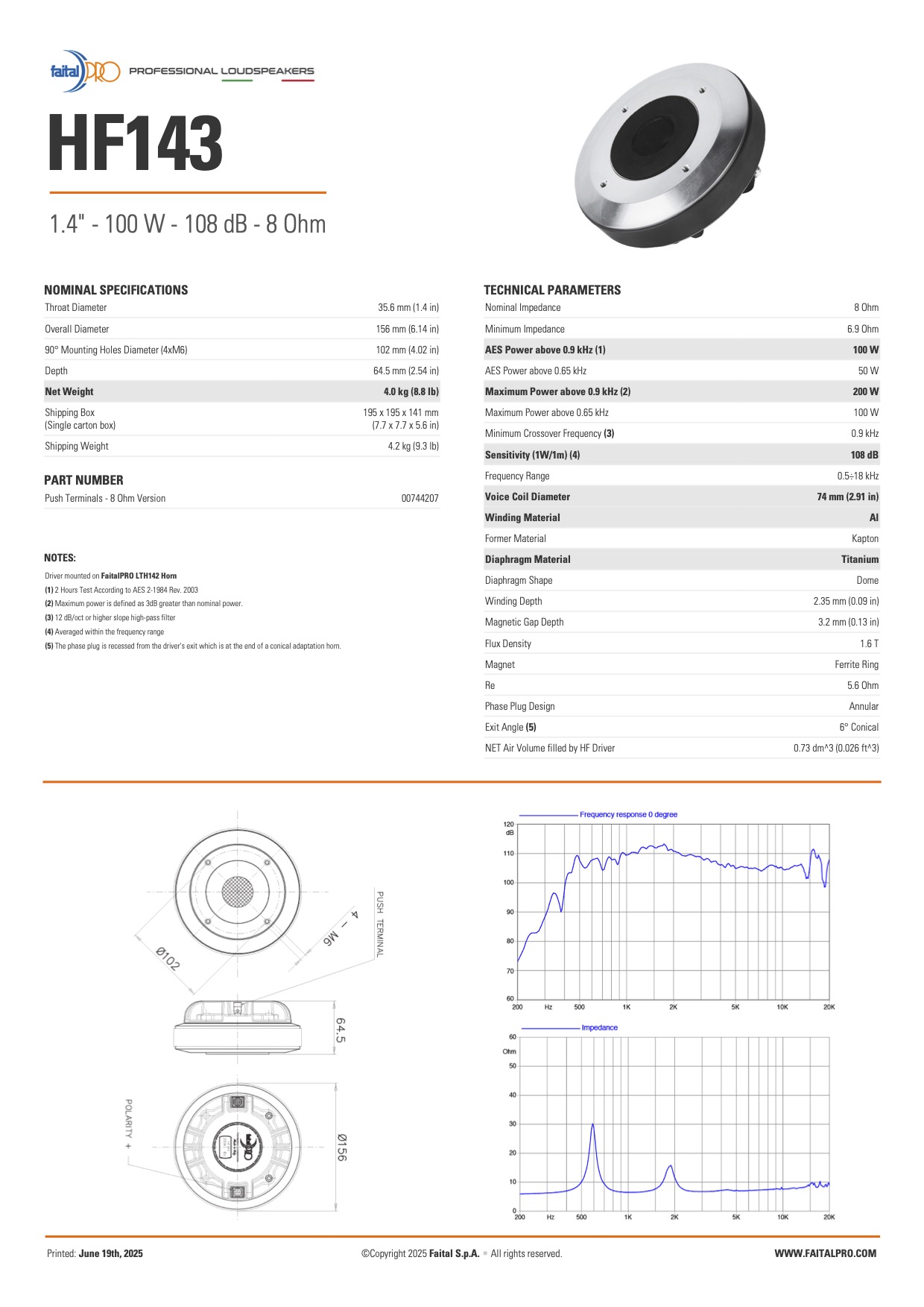 1.4 inch - 100 W - 108 dB - 8 Ohm / 16 Ohm HF Driver