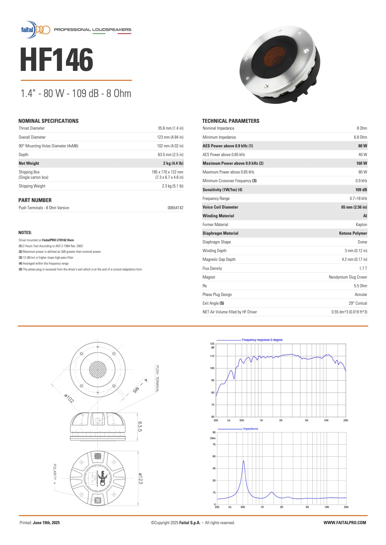 1.4 inch - 80 W - 109 dB - 8 Ohm / 16 Ohm HF Driver