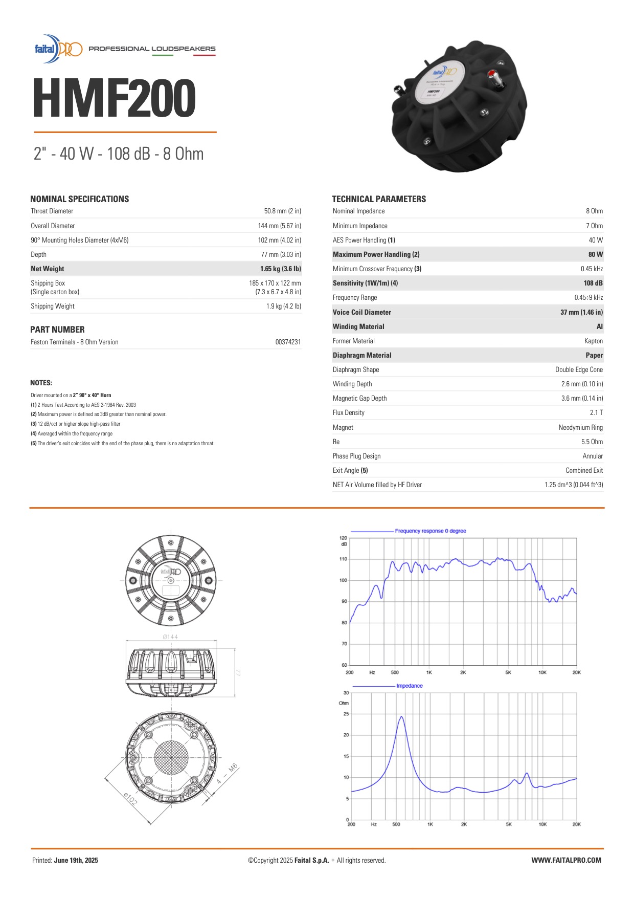 2 inch - 40 W - 108 dB - 8 Ohm HF Driver